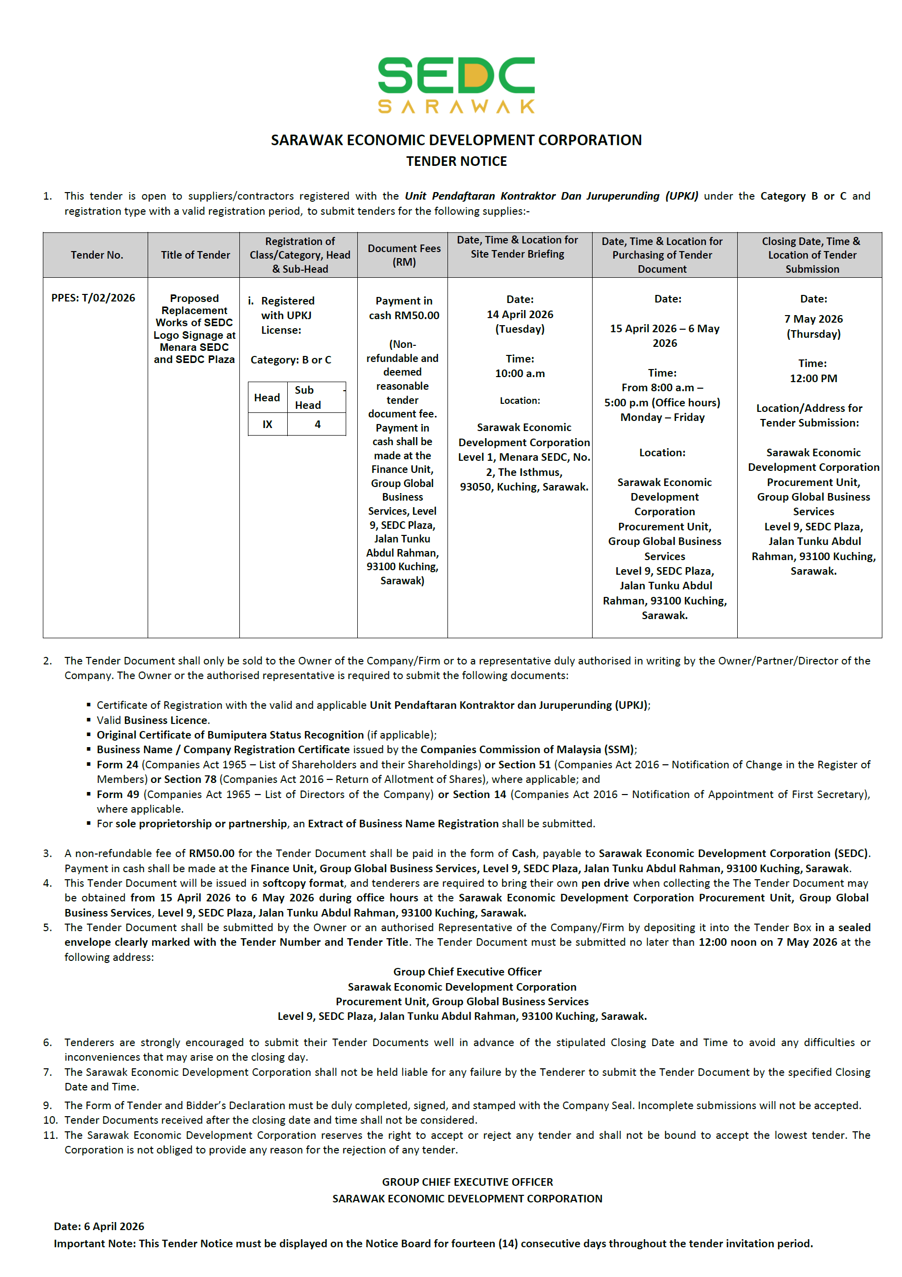 PPES: T/02/2026 – Proposed Replacement Works of SEDC Logo Signage at Menara SEDC and SEDC Plaza